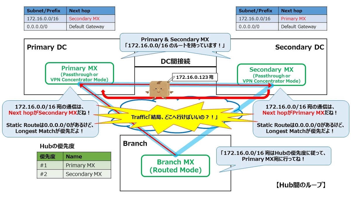 Meraki MXのDC-DC Failover構成では、Hub間でループするのが想定動作になります。